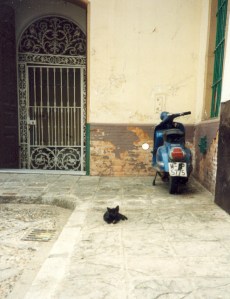The reason I know his birthdate is a bit of a long story which started when I kind of adopted a street cat here in Seville. He just turned up one day – gorgeous black thing, long and sleek with amazing green eyes. And very affectionate. I called him Cat (after Holly Golightly’s cat in Breakfast at Tiffany’s) and he ended up also becoming the ‘mascot’ of the bar across the street. I’d buy the food but everybody who worked at the bar would feed him and he was always welcome. Then one day he disappeared and I didn’t see him again for about two weeks – then I found him hanging out in a square not far from here . . . with his pregnant girlfriend! So of course I named her Holly.