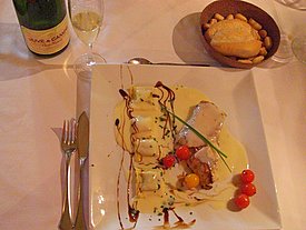 my scrumptious sea bass with cheese sause and little raviolis