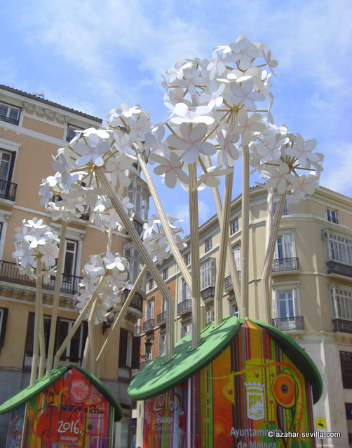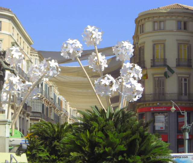 Just before I left Málaga I saw the mother of all biznagas (in fact, two of them) being installed at the end of Calle Larios and thought they were wonderful, though they were clearly artificial.