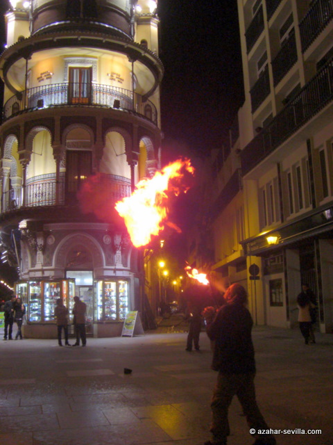 Had never seen that fire-eater guy before the other night. He not only had no eyebrows but more than half of his hair had been singed off too. Eep! Felt I had to give him a euro after stopping to take photos.