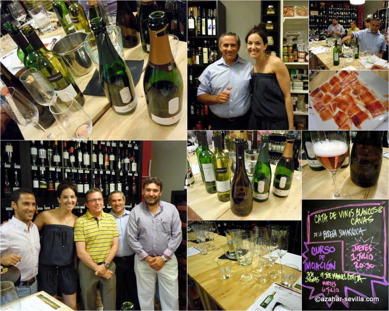 Between the wine-tasting and the gourmet food shop opening party Nog & I stopped for a couple of wonderful tapas across the street at La Azotea restaurant (Jeanine had given us a half-full bottle of cava to take over with us). You can see grilled parga (have no idea what that is in English) with some mixed veg, and grilled hake in an amazing spinach and langostine sauce. The kobe burgers were being ordered by just about everyone at the bar so I had to get a photo – will try it next time.