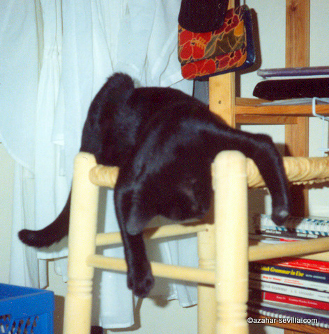 Well, that makes Azar about 73, which isn’t really THAT old. And he was still scampering about on the back of the sofa at age 70… I reckon he’ll have good days and bad days and, as Sled told me, a lot of the bad days will just be because of old age and there is nothing much to be done about it. It’s been very helpful to accept this. Like when old cranky Lua was dying of cancer, remember? That chica was the most spoiled cat for the last six months of her life…