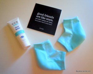 Anyhoo, Teuchter had also mentioned these gel socks to me and suggested I pick some up at Boots before I left (of course I forgot) and then yesterday I found a package in the post which included the socks, some heel balm and that very lovely card. Made my day!