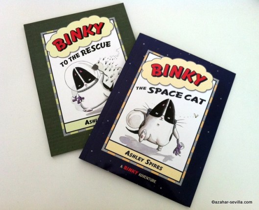 Extra surprising as it was apparently “missent to India” from the UK before finally arriving in Sevilla – how the UK postal service screwed that one up is a mystery. Anyhow, I picked the package up yesterday about three weeks after it was sent, tore it open straight away and was delighted to find these charming and funny Binky the Space Cat books by Ashley Spires. So fun!