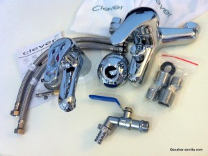 A few hours ago these three taps were sitting out on my dining table and now… they are all where they should be! I’m so thrilled because the old taps here were a constant daily source of frustration and annoyance. As you can see, the new taps are not only bright and shiny, they are also clever.