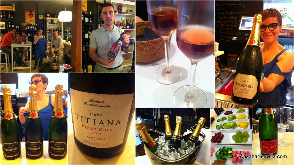 What better way to further celebrate Tuesday’s good news than to go out to a free cava tasting the following evening. No question mark – rhetorical question. One of my all-time favourite tapas bars – La Azotea – has recently opened the new location of their fabulous Vinos & Más gourmet food and wine shop and last night was the first cata (wine tasting) featuring five fabulous Parxet cavas: brut reserva, brut natura, gran reserva extra brut (my favourite), brut rosé and a dessert rosé. What I love about these catas at Vinos & Más is that they are casual and not at all snobby. I get to learn something new about wines and never feel silly about asking questions.