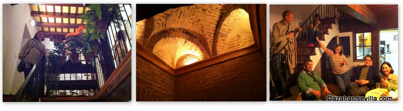Peter had taken out a group on a Sevilla Tapas Tour – a family of four from Texas and a couple from the UK – and I ended up going to meet them at their final stop for the evening. Final? Ha! Turns out everyone was having such a good time that Paige and Keith invited everyone back to their holiday rental for a nightcap. The hobbit house! And what a curious place it turned out to be. There were four bedrooms haphazardly arranged over three floors, an odd sitting room off what everyone assumed was the living room, and a small terrace overlooking Judería street and the Royal Palace walls. Our guess was that it used to be some sort of guardhouse but now was prettied up with geraniums on the windows and made into a more or less functional living space.