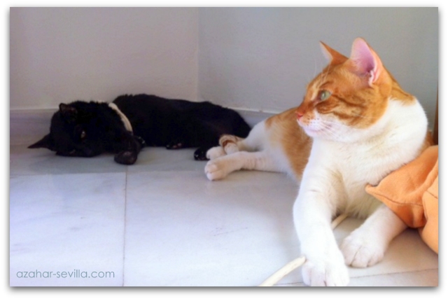 As much as possible I try not to leave Azar on his own, but sometimes both Peter and I have to be out and so I put him in my room to keep the other two from pestering him. He seems to like being under things a lot, like my bed or the tv table, and so when I see him looking restless I help him down from the sofa or bed so he can go where he wants. This morning I found Loki keeping Azar company under the table and it really made me smile.