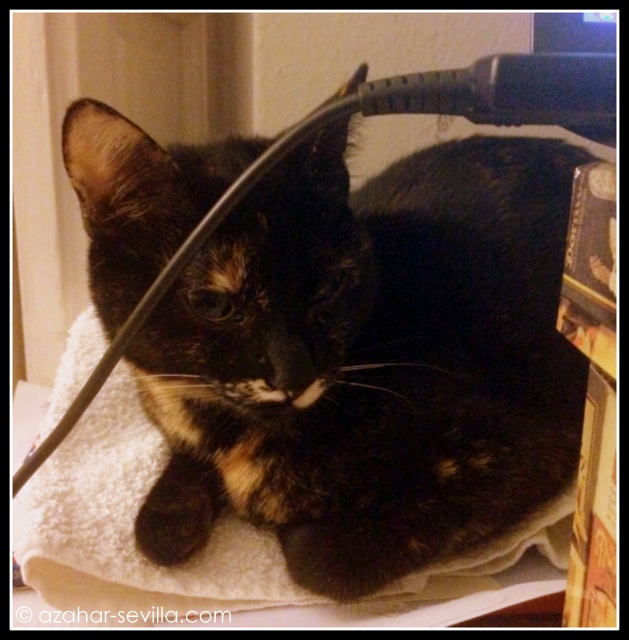 Woke up with a start around 3 am because she wasn’t in my bed, as she had been when I’d gone to sleep. A quick look around found her all cosy on the little towel behind the laptop, bless her. And she’s there now, my little sausage. Stay tuned for updates…