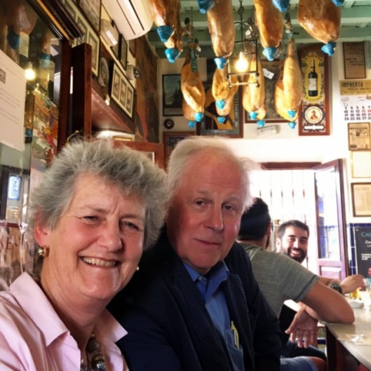 Sue and her husband Monty were travelling with friends in Jerez and said they would have a free day in Sevilla before their flight left on the evening of lunes santo (Holy Monday) at the start of Semana Santa. This turned out to be a bit trickier than I had considered, with traffic issues and whatnot, but in the end we managed to get together for a lovely afternoon tapeo.