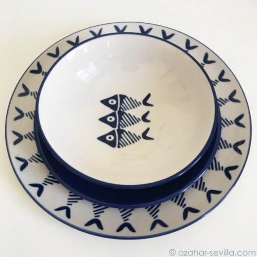 You know how it goes… you have that one extra glass of wine at lunch and then on your way home you see something in a shop window that catches your eye. Luckily it wasn’t shoes (that never works out well – tipsy feet are much less fussy than sober ones) but these super cute, and totally unnecessary plates. Actually it’s a fish dinner plate, a fish soup bowl, and two smaller plain blue plates in between. They make me smile. What’s the best/worst thing you’ve ever bought while under the influence?