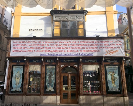 A few months ago Confituría La Campana was forced to close down its sidewalk terrace and since then it has been struggling to survive. And with little/no seating inside it will not survive. The same thing happened to another landmark establishment not long ago – the beloved Bazar Victoria – a wonderful Aladdin’s cave of a housewares/hardware shop that was forced out by the banker landlords, and that now empty corner still breaks my heart when I pass by.