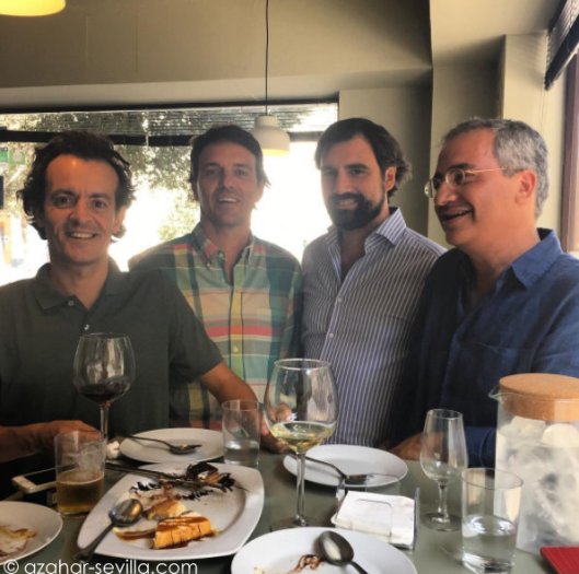 Another meeting with a Twitter pal. This one was a bit unusual as I have known Francisco (the guy with the beard) online for over five years. We have almost met up a couple of times, but somehow it never worked out. This time he invited me to a new restaurant/bar run by his friend & chef Marcos (left) called La Grulla, and we finally got to meet in person. The unusual thing about this is that Francisco lives in Sevilla, so meeting up shouldn’t have taken so long. Anyhow, I also got to meet two other foodie friends of his, Eduardo and Miguel, and we spent a pleasant afternoon “talking shop” and comparing notes about various bars and restaurants in town, while chef Marcos kept bringing us wonderful dishes to try and keeping our glasses full. Good times!