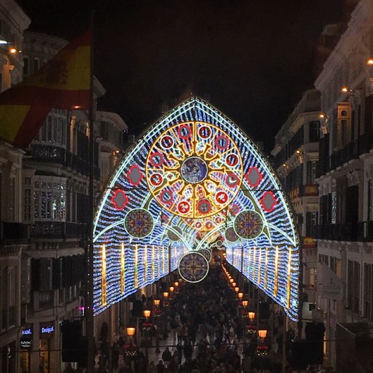 After lunch l met up with Ania who was briefly back from Poland to attend a seminar in Sevilla. She had also decided to take a day trip to Málaga while here so she could see the Christmas lights – and also see her friend Joanna. So we met at La Reserva 12 for a couple of penúltimas. By the time we poured Ania into a taxi to catch her train home l was ready to get back to my cosy apartment. But before l did that l went to Victor’s strategic location to try and get THAT shot of the lights from that unique vantage point. Victor was right, you really do have to climb between the clothes racks!