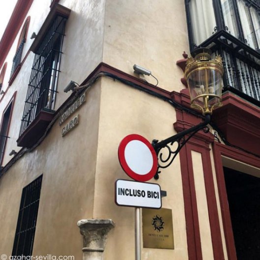 I was happy to see this yesterday… a No Traffic sign on a pedestrian street in Barrio Santa Cruz that makes it clear that this includes bicycles. It’s always surprising (and annoying) to see people riding their bikes on these narrow streets, especially one major idiot who runs a bike tour company and actually LEADS HIS TOUR through the barrio. Which of course makes tourists think it’s perfectly fine to do this. Well, it’s not. It is not only dangerous… it’s illegal. So let’s hope people start paying attention.