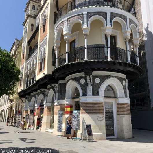 Here you see the landmark Edificio La Adriática in Avenida de la Constitución, now reduced to housing cheap & cheesy souvenir shops. Below was once a traditional family-run shop in Calle Francos that is now a tacky “express market” catering to the tourists living in all the holiday apartments in the area. It’s bad enough that we’ve already lost Barrio Santa Cruz to this sort of crass tourist-focused commercialism, but now it’s spreading further afield. There is almost no more affordable decent housing in the Casco Antiguo. Likewise, independent shops have been closing in droves, only to be replaced with shit like this.