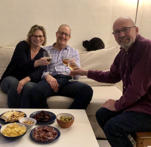 It was a lovely evening and, as you can see, Peter was also invited (grinchiness is less toxic in a group). And you may also notice that little scamp Morcilla all snuggled up next to El Gordo. I was shocked – she has never done that before. At best she will come into the same room as strangers, but here she was getting all cosy.