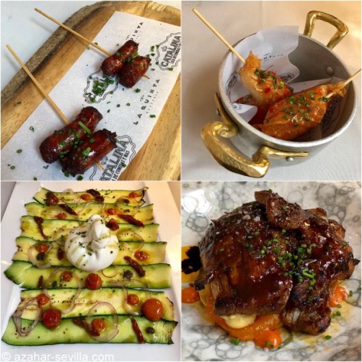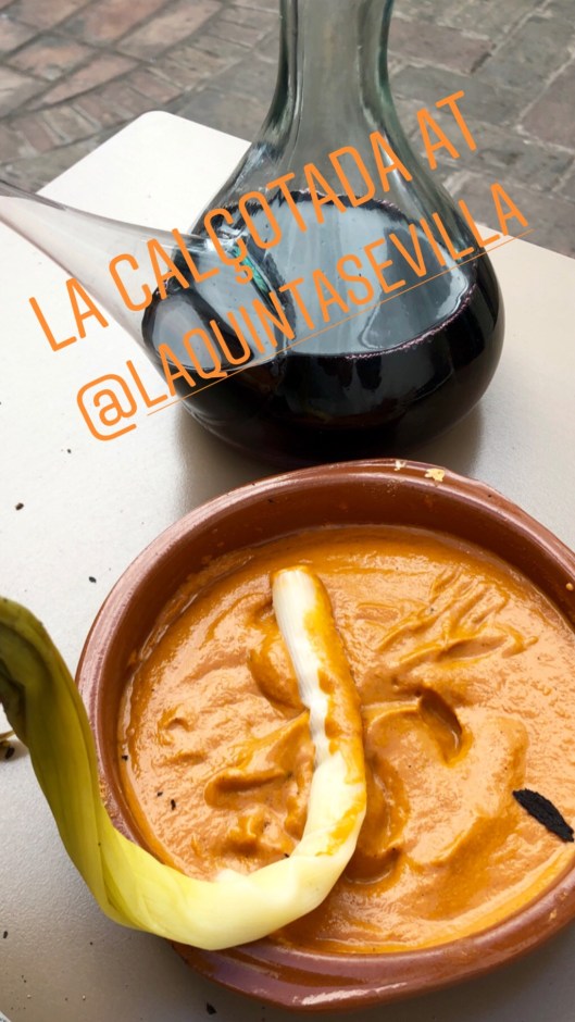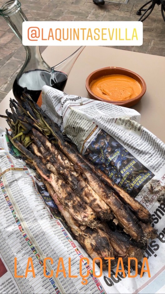The Sevilla version at Restaurante La Quinta has taken place during February and will finish mid-March. It has been so successful that it took awhile to get a booking, but finally Ania @aniainspain and I got in last Saturday. We had the option of the whole menu featuring grilled sausages, meats, beans, etc, but opted to have the calçots on their own and then order other dishes a la carte.