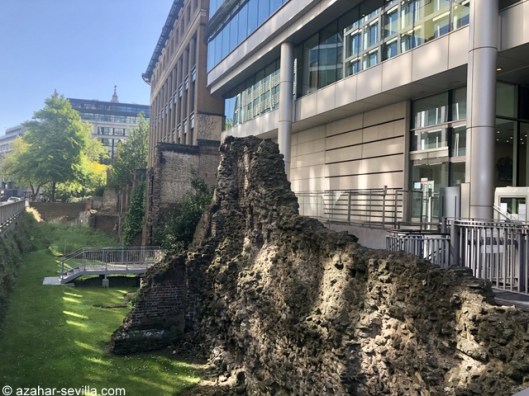 After a wander around the market, which has changed since I was last there and, for me, not for the better, I made plans to get over to Farringdon Road. Oli @cotedupy and Phoebe @plemess had been in touch and we were going to meet at the Winemakers Club for a pre-dinner drink. As there was no direct bus route there I decided to walk. Google maps told me it was about 35 minutes along London Wall, which of course didn’t account for the usual “getting lost” time. It also didn’t tell me that London Wall is one of the ugliest streets ever, though I did get to see a patch of old Roman wall.