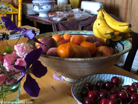 While Alexis did her tasting I wandered around the gorgeous sprawling house and grounds, including a trip over to the spectacular salt water infinity pool, followed by the Buenvino dogs, until it was time for lunch. Which was fabulous. Along with the house guests, we were joined by the Chesterton sons, Sam, who shares cooking duties with his mother, and Jago, who works at nearby Cinco Jotas, producer of exquisite Jamón Ibérico de Bellota.