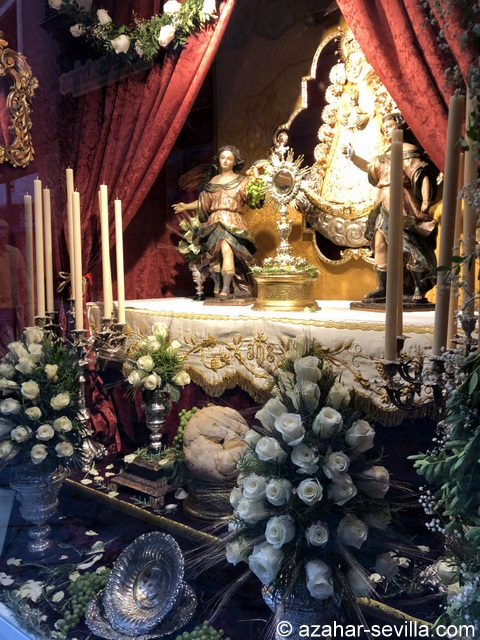 Corpus Christi 2019 in Sevilla… as (almost) always I got out before the procession began and walked the route. It was a lovely fresh morning and I was happy I went out, though getting up was hard. No pics of the procession this year as I had stuff to do before Lizzie & Russell arrived (more on them later!) but there are altars galore. Pics below…