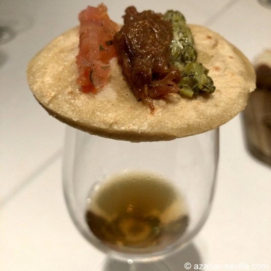 It’s a “kilometre 0” menu, with locally sourced products and reinterpreted dishes that are based on traditional Sevilliano recipes, and is divided into four parts: Vamos de Tapeo!, Vámanos a la Feria, Paseo por Sevilla and Desserts. We started off with a vermouth cocktail and had some wonderful wine pairings throughout.