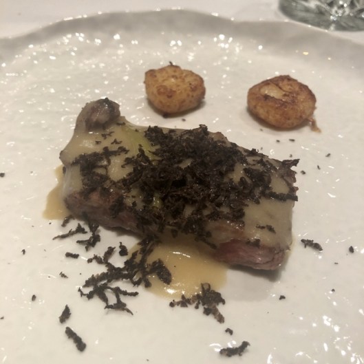 pluma Ibérica (pork shoulder) in whisky sauce with black truffle