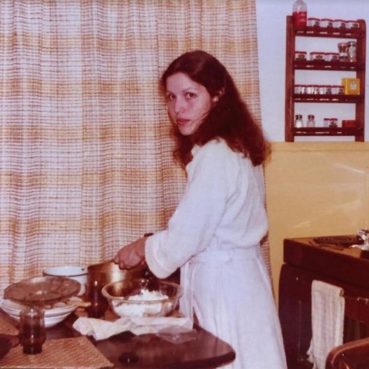 So in spite of some conspiracy theorists saything the #MeAt20 meme is just a way for THEM to collect more information from us online (in this case for facial recognition) I decided WTF and went looking for some old pics of me. Turns out I don’t have many, and none of me at 20, so here is one when I was 19 (at my first wedding) and then another one at age 22 making pierogi in a very yellow Winnipeg kitchen.