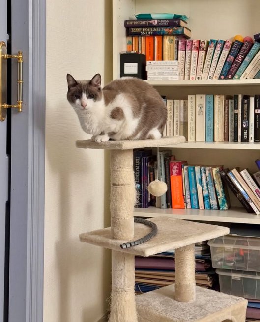 A very territorial Luna… this is HER cat tree. πŸŒ™ πŸ’™ 🐾