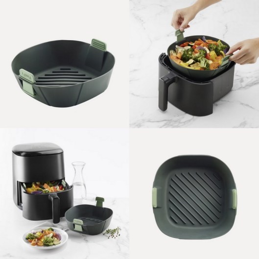 Well this works! I was in the middle of preparing yesterday’s lunch when I noticed that the roasting pan I had bought for the air fryer a couple of years ago was in pretty bad shape. A quick look online and a quick trip to El Corte Inglés later and… brand new “BPA free” silicone thingy. I was a bit unsure about it at first, and being non-biodegradable they’re not exactly “eco-friendly”, but oh well. It’s mine now. As for functionality, it cooked everything just fine but it doesn’t really brown food as it doesn’t conduct heat. Anyhow, it will be useful for stuff like this…