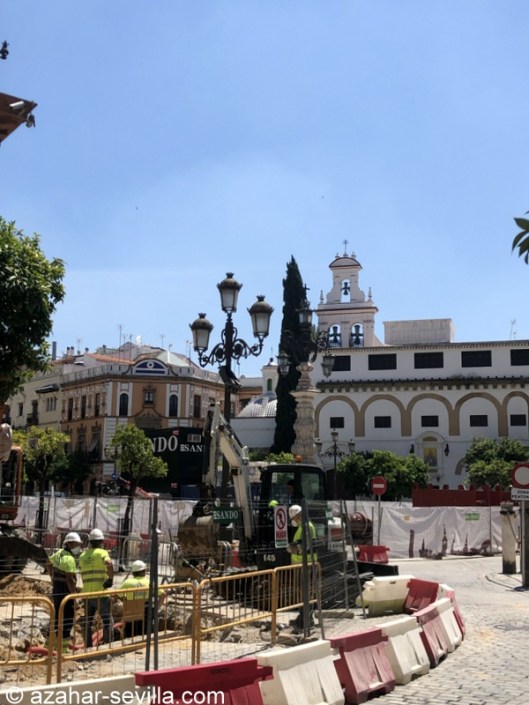 The thing about my rooftop walks is, now that it’s heating up, I have to either go up early morning or else after 8 pm because any shade up there totally disappears around noon. And since I’ve got used to lazy mornings, well, it’s evenings or nothing. But because I had to take out rubbish in the afternoon I ended up taking the (extra) long way (6000 steps) to the supermarket because I was dying to see my Sevilla again. I decided to go as far as Plaza Virgen de los Reyes (my favourite square) and was surprised to find out it was basically a construction site. Turns out they are using this “down time” to finally pedestrianise Mateas Gago, the street that comes off the square and where I lived the first 18 years. Bad news for the bars that are already going to struggle without any tourists, but I suppose there was never going to be a good time to do this.