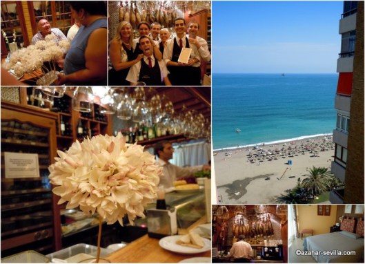 So this collage is a bit of yesterday. The sea view from the apartment terrace, my freshly made bed, the tapas bar including a biznaga seller and later a close-up of a biznaga (jasmine blossoms onna stick) which is a very traditional Málaga thing. After a rather lazy Sunday I am quite looking forward to getting out there and making the most of being here . But I tell ya, waking up after that luxuriously long siesta to the sound of the waves gently crashing on the shore … oh, that’s really all I want. I love it.