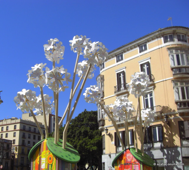 Just before I left Málaga I saw the mother of all biznagas (in fact, two of them) being installed at the end of Calle Larios and thought they were wonderful, though they were clearly artificial.