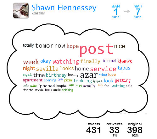 Well, I think these are cool, especially considering how much I love Twitter and how often I use it. I chose the top 50 words cloud option. Link to yours here if you make one!