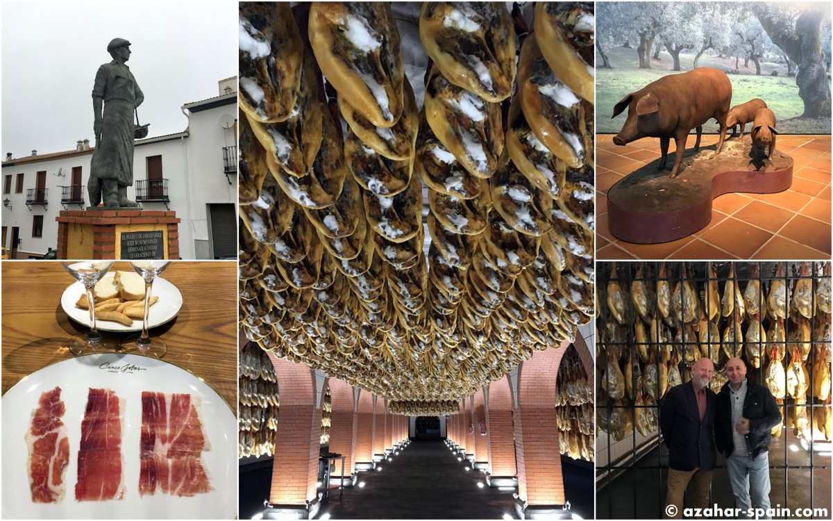 First stop was Jabugo, THE home of jamón Ibérico de bellota. Once there I was hoping I’d actually be visiting the dehesa and see the piggies in person (bucket list item), but the closest I got was that sculpture up there. Still, we had a wonderful and very informative visit to the 5 Jotas bodega, finishing up with a glass of fino and a fab snack of jamón. On the way back to the car we stopped at a little shop to pick up some jamón to take home and then it was off to our next mystery stop.