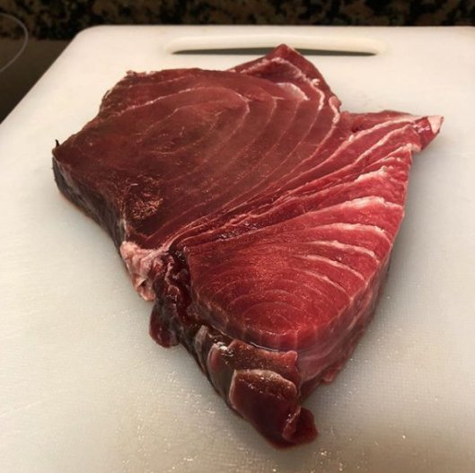 Season tuna with salt & pepper and brown in a pan with a good amount of olive oil. Then set tuna aside and add sliced onion and crushed (or sliced) garlic to the oil, sauté slowly until nicely browned, then turn up the heat and slosh in some manzanilla (or vinegar!). Let bubble for a bit, the turn heat down and return tuna to pan.