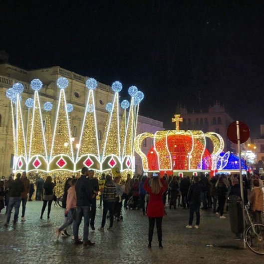 This timed perfectly with meeting up with Jo after lunch, who was passing through town on her way back to London with a few hours to spare before her flight. So we met first at the Hotel Alfonso XIII (see gorgeous tree above) for an overpriced drink, before heading to La Azotea for a penúltima (below). I had also made plans to meet up with Peter to see the “light show” in Plaza San Francisco and it turned out that Jo had time to join us.