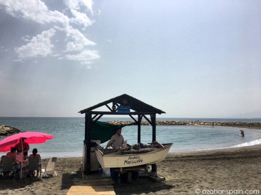 I had planned to do sea walks every morning while I was here… ha. Finally ended up doing ONE yesterday, out to Pedregalejo to have lunch at Andrés Maricuchi. It was like going home. As soon as Andrés saw me he came rushing out to give me a big kiss and Julián set up a nice table for us that caught a refreshing sea breeze. As the afternoon began to cloud over we walked back to the centre of Málaga for rooftop cocktails. An excellent final full day in Málaga.