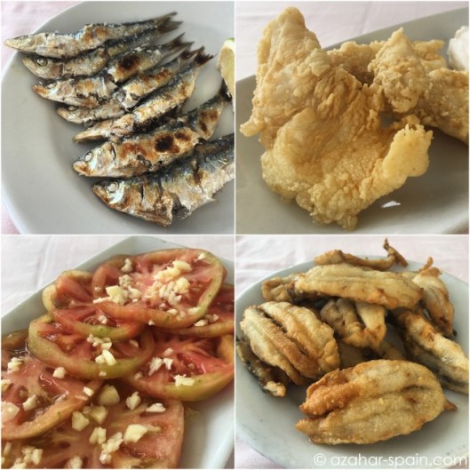sardines, breaded rosada, tomato salad, boquerones al limón