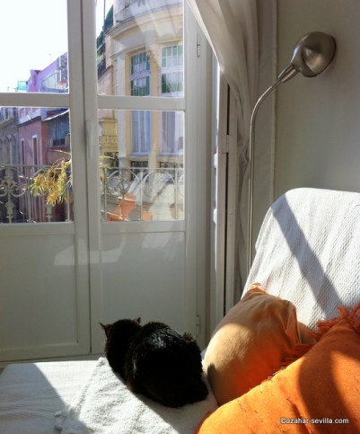 Those two young whippersnappers Loki & Luna have been getting all territorial about the morning sunbeam space in my room and have taken to bullying Azar off the bed. The solution has been to open the living room curtains especially for my darling boy and give him his own personal sunbeam. Win-win! I get to hang out with Azar while I get my work done and he ends up getting extra snibbles. 🙂