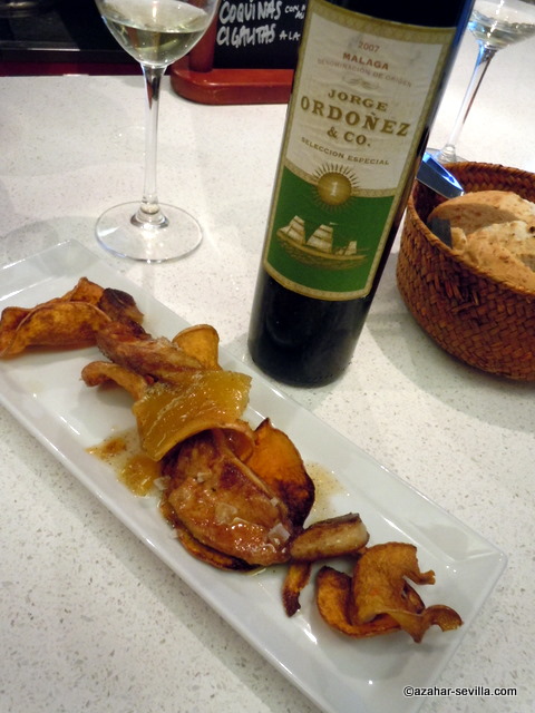 Then *almost disaster* struck when Victoria was suddenly called away to a very important meeting out of town, which meant my “face time” with her just wasn’t going to happen. But luckily she only postponed the vendimia tour to the next day, something I know was very generous on her part as this is the busiest time of year for her and losing time going out of town meant she was going to be backed up when she returned. But she still spent all of last Friday with us, taking us to a a couple of the vineyards, then to see some sites in Almáchar and, after a quick trip to the bodega to talk to the winemaker there and see the grapes being pressed for Botani 2011, she invited us all to an amazing lunch at a beachside seafood restaurant in Málaga.