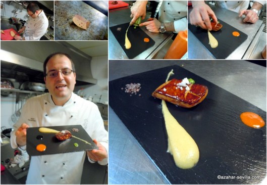 Here’s Chef Eneko at Vineria San Telmo preparing grilled foie gras for Pat.