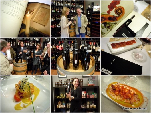 It was another free wine tasting (cata) at La Azotea Vinos & Más, this time put on by Bodegas Habla from Extremadura. I like to go to these because I always learn something and meet new people, and it’s a free night out! I invited María Paz from Bar Campanario and that ended up being a great choice for many reasons. First of all because she is very sociable and talks to everybody, and of course knows a lot of people from being in the biz. And as I’m also rather chatty we ended up getting invited to the bodega by the owner, who said we could stay there and they have horses and blah, blah… and María Paz said no problem, we could go in her car (!). And she repeated that offer when we went over to the bar for some tapas and ran into someone she knew who invited us to Córdoba (!!). Then her two sons Emilio and Alvaro showed up and they got to reminiscing about when they used to take English classes with me (they were 6 & 8 then and are 20 & 22 now), which ended up with them deciding to start classes with me again next week (!!!). So all in all, a good night out, plus I got to catch up with María Paz, whom I haven’t seen in ages. Also got lots of photos and stuff to put in my Seville blog.
