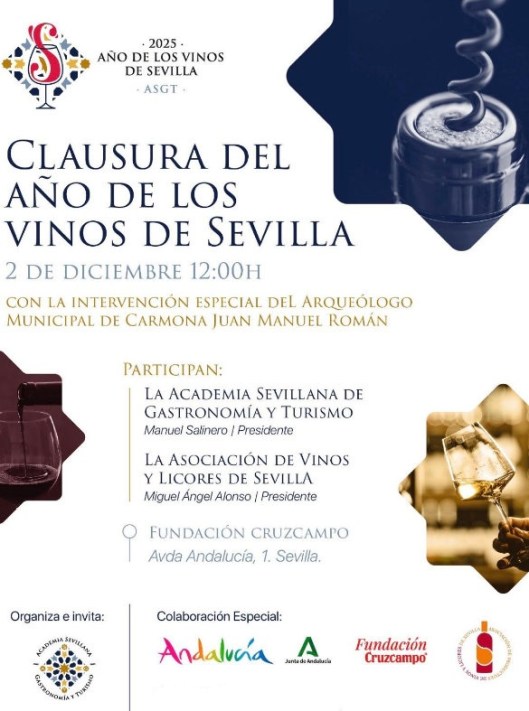 Every year the Academia Sevilla de Gastronomía chooses a local product to feature and 2025 has been the Año de los Vinos de Sevilla. The closing ceremony for the year was today and it was held at the Cruzcampo Foundation. What used to be an easy half-hour trip on the 27 bus is now an hour-long trek with the bus stop twice as far from home. As it was raining I had to wait for it to let up because I can’t use an umbrella with the crutches so I arrived almost an hour late. But although I missed a large portion of the presentation I was well on time for the reception that followed. As usual it was great to meet up with everyone, something I haven’t been able to do as much lately.
